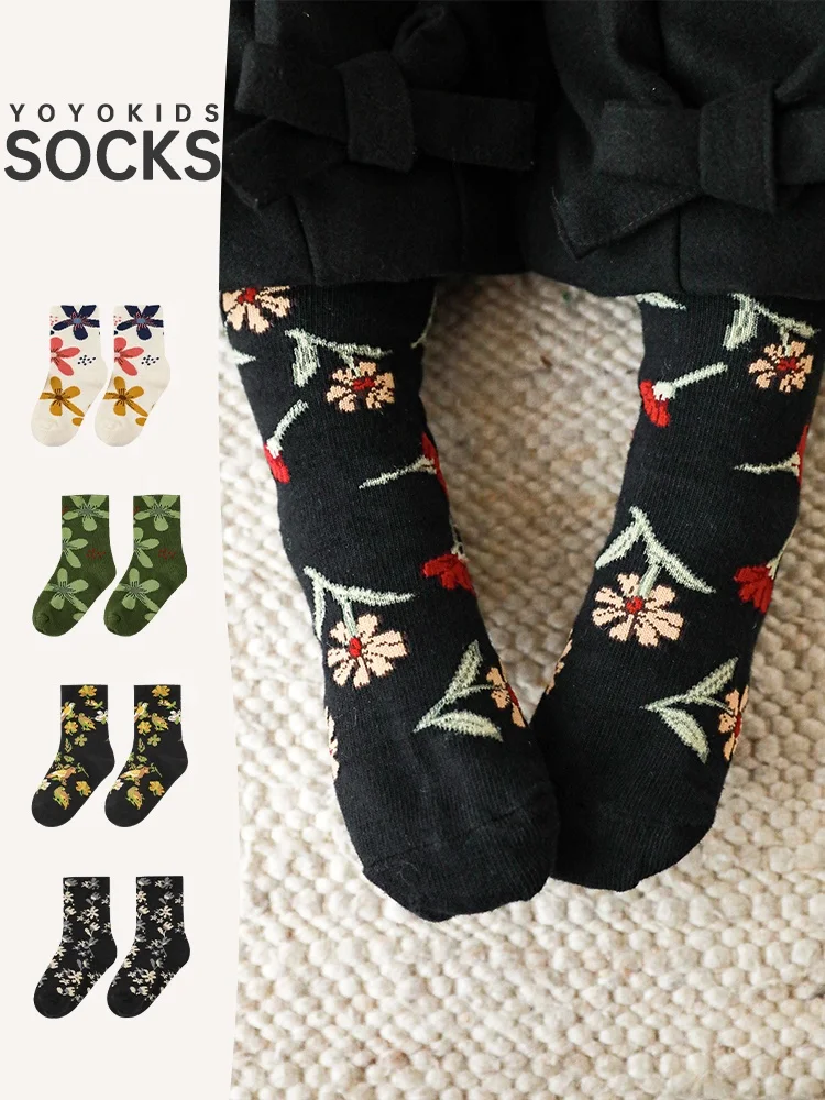S0911/Floral Jacquard Fashion Personal Warmth Comfortable Baby Socks Boys Girls Kids Children Toddler Socks
